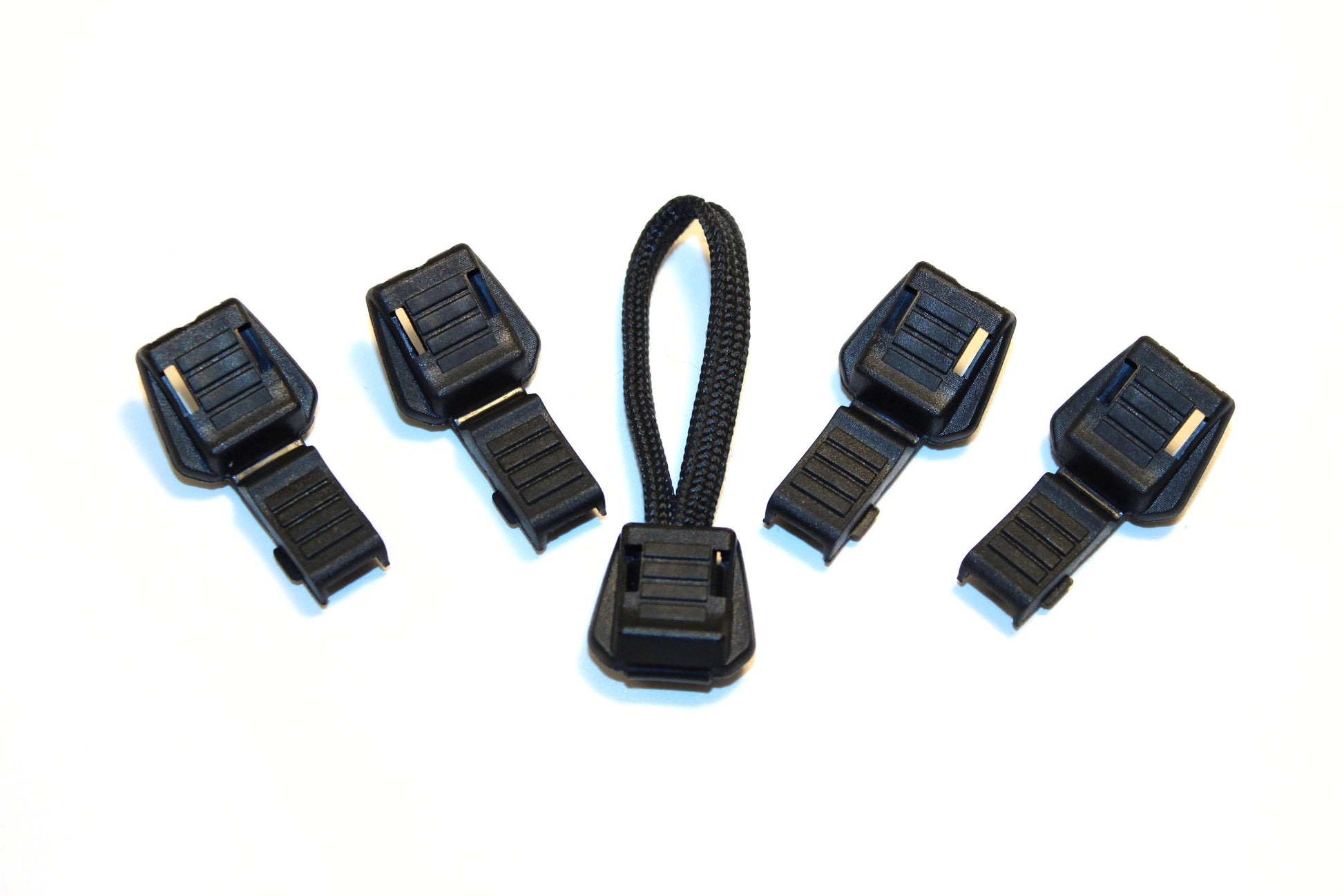 These black plastic cord ends are a 'heavy-duty' version of zip cord ends, and fix to either one or two strands of cord. They can be used as a simple cord end or as a zip puller (forming a loop with a short piece of cord) or drawstring end for use with a cord lock. The fitting is slightly chunkier than standard zip ends and these are shaped to provide a good, secure finger grip even with gloved hands. They are easy to fit with a simple 'snap over' closure. Three rows of internal spikes make a secure grip to either one or two strands of cord.